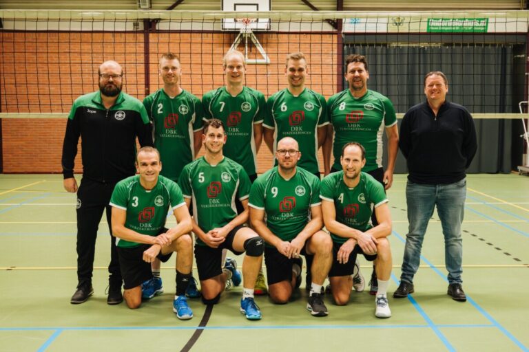 Ons eerste herenteam traint iedere maandagavond van 21:00-22:30 uur in de sporthal in Leens. De selectie van elf mannen speelt wedstrijden in de derde divisie! Een team dat van gezelligheid houdt met bier & bitterballen maar wel wil spelen op niveau. De aanvoerder van ons eerste herenteam is Jan Ekster en de trainer is Johannes Damstra.